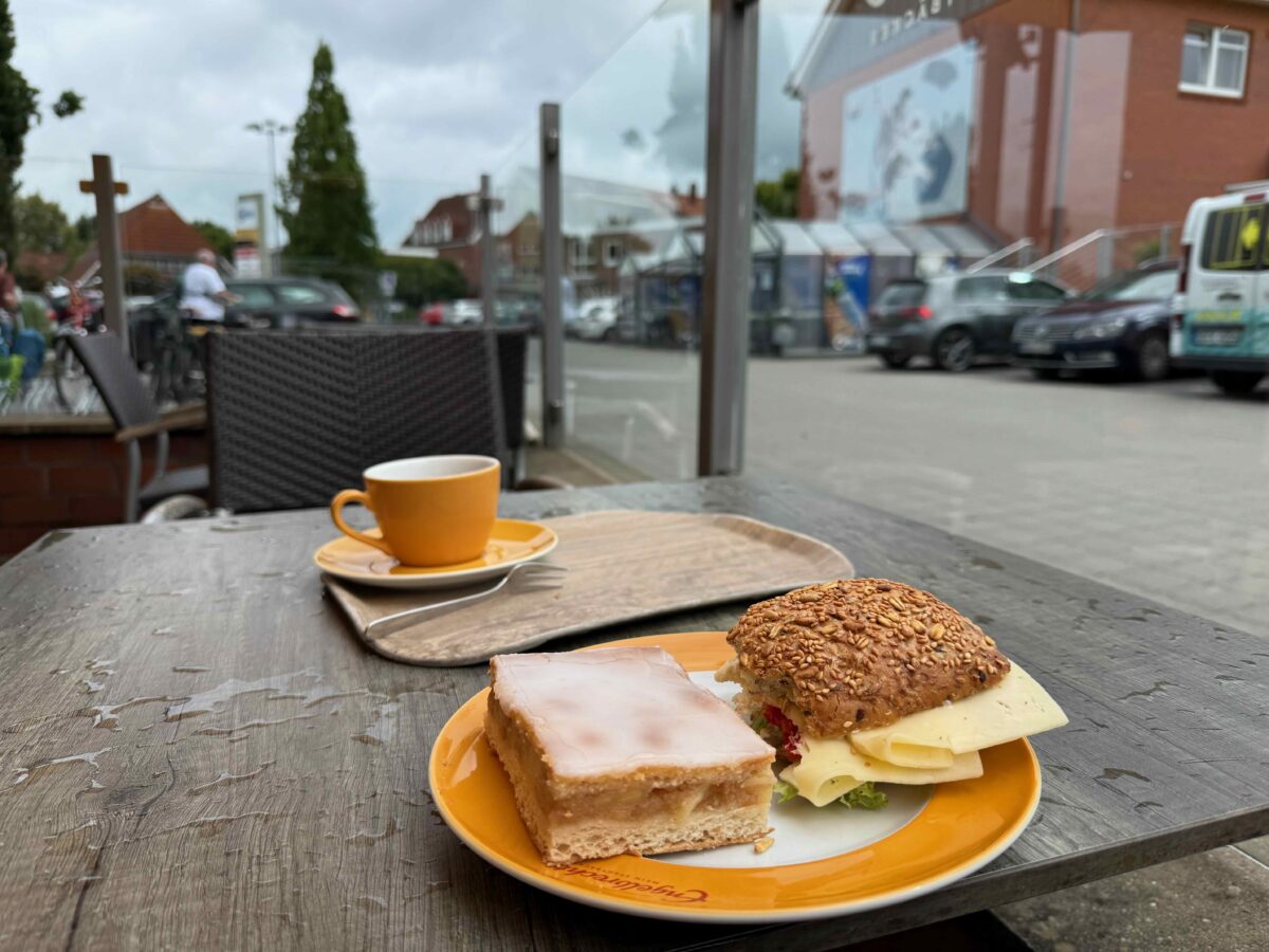 Ich fuhr nicht die gleiche Strecke – das wäre ja langweilig, also suchte mir Komoot mal was anderes heraus. Auch wenn anders, teilweise kannte ich die Strecke schon, aber naja der Kerl (Kommot) kann ja – auch nur über bestehende Wege Routen und davon gibt es zwischen Elbe und Bremerhaven nicht so viele ;-) So fuhr ich also erstmal über Beverstedt und genoss da erst einmal Frühstück! Bevor es dann quer über wiesen weiter gen Teufelsmoor ging.