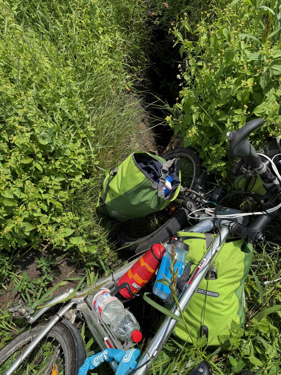 Auf dem Weg waren einige Löcher – so gross das unter mir plötzlich mein Fahrad weg war – *lach* Alles gut gegangen, aber huch, nen Loch!