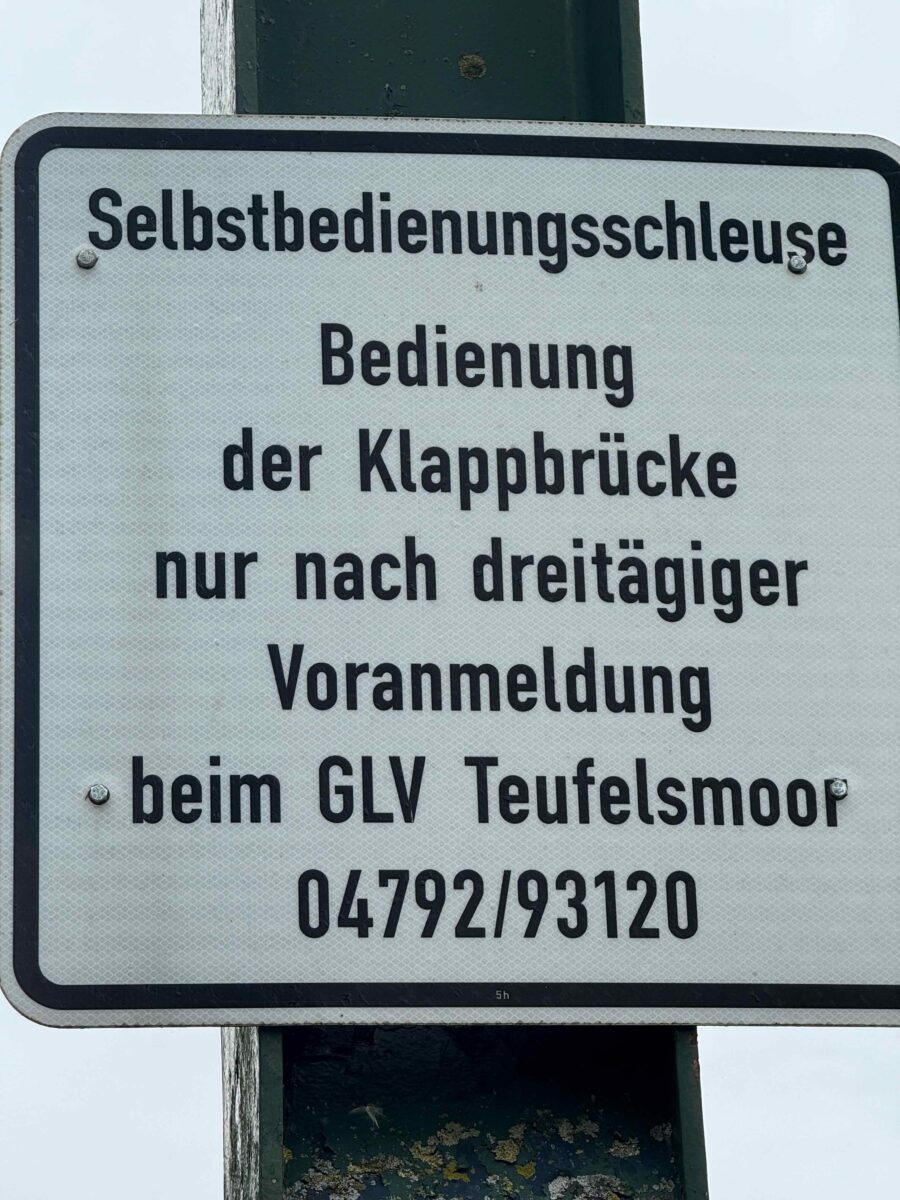 Dafür lernte ich im Marinebereich wieder, wie es auch gehen kann: Ein Schild an der Teufelmoorschleuse – drum merke falls Du da noch mal mit dem Boot hinwillst ; -)