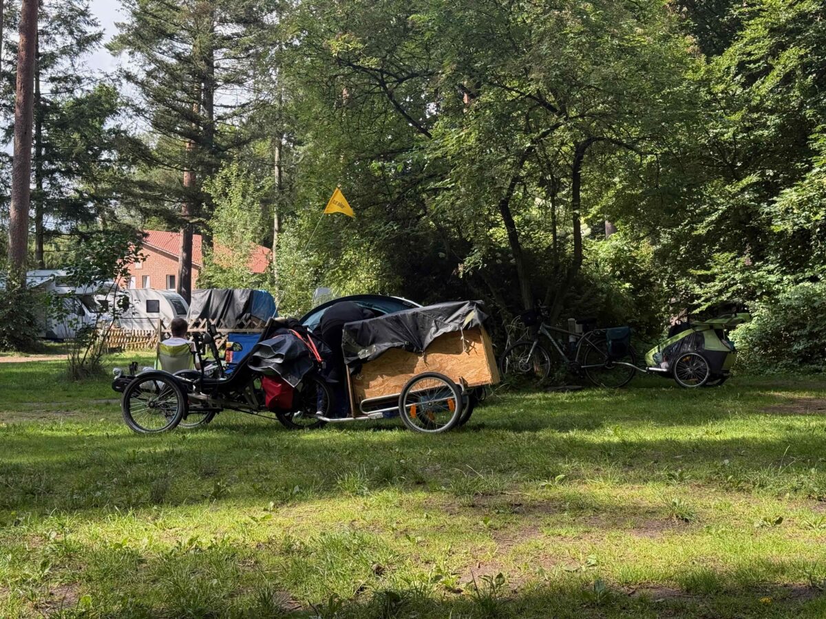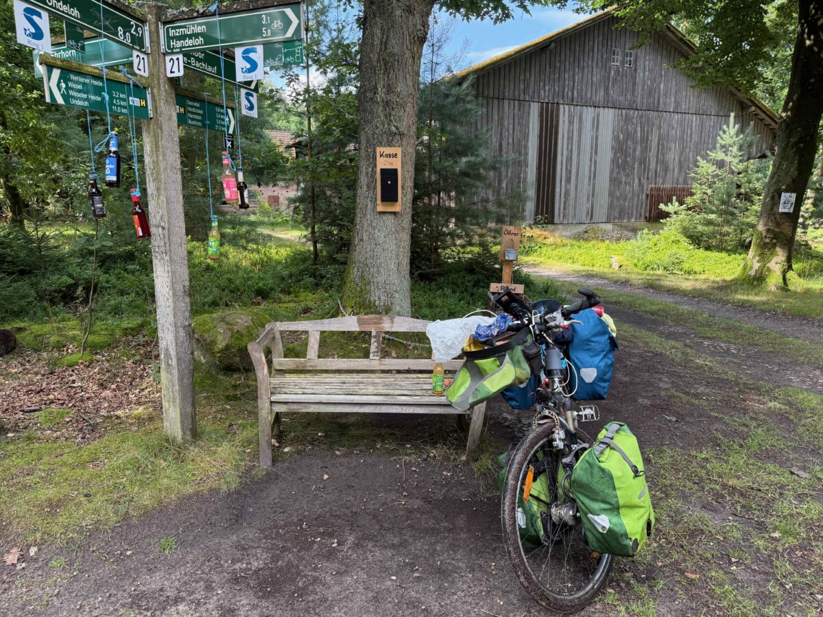 So ging es den nächsten Morgen mehr oder weniger Motiviert weiter, an diesem Tag wieder meinen „Lieblingsweg“ durch die Lündeburger Heide, aber tatsächlich mal nicht über den Sandweg sonder nur durch den Wald, an der Getränkebank und meinem „Sturzladen“ vorbei und zu einem neuen Campingplatz – der den ganzen Abend Interessant war, den er wurde richtig voll! ; -)