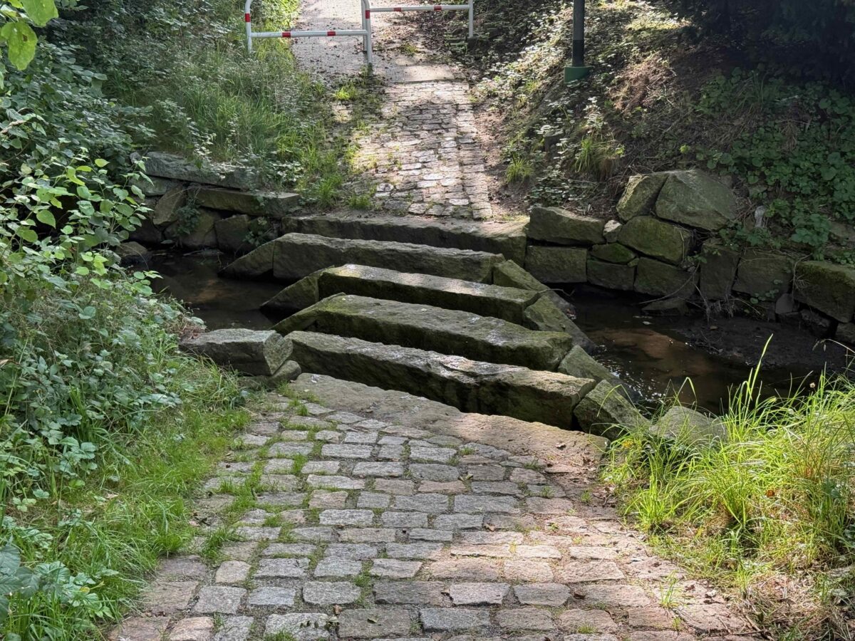 Und so kaum von der Fähre ein leichter Anstieg zur Strasse und dann links abbiegen und rauf. Erst noch leicht bebaute Schlangenlinien wurde es dann später zu einem „heiligen“ Anstieg an dem ich auf Grund von Nicht-Fitness mehrere Pausen benötigte und am Ende sogar geschoben habe. Nicht ohne mich am benachbarten Bach zu erfrischen. Es war total schön! Und ich klitschnass von dem Anstieg, nicht vom Bach ; -) Oben angekommen ging es wieder aufs Rad und weiter.