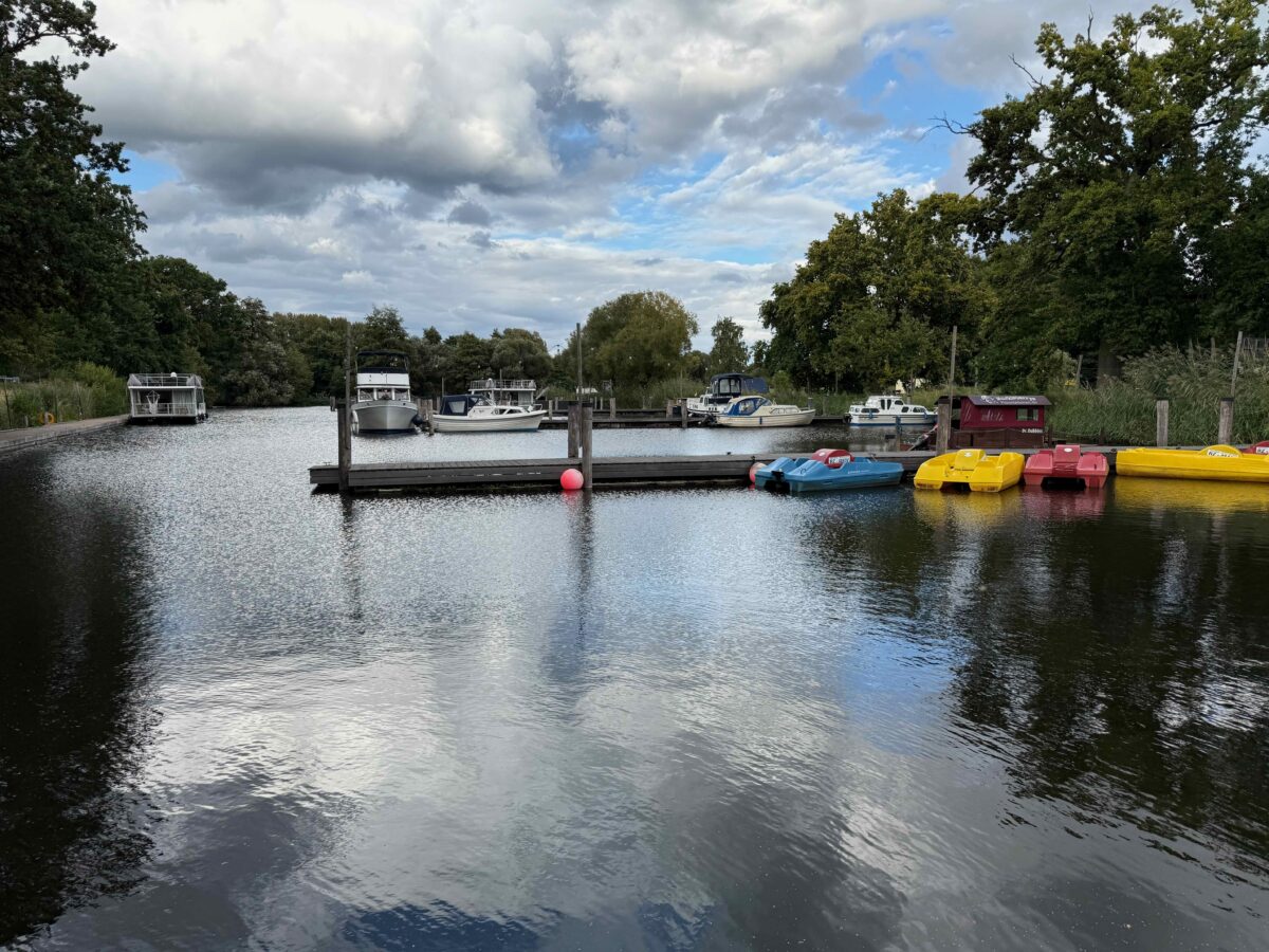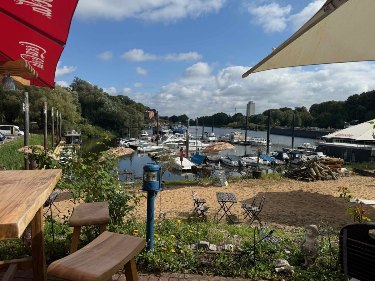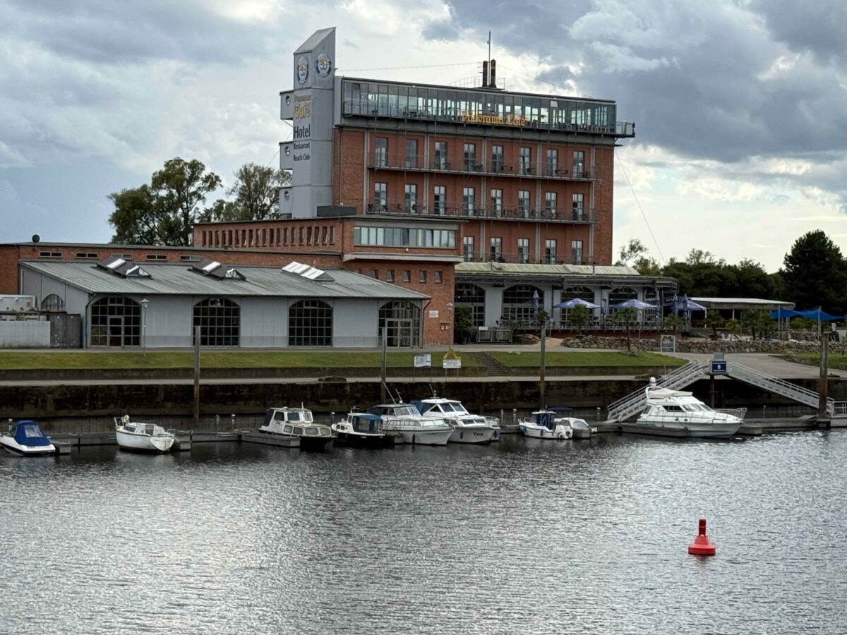 Auf der Rücktour genoss ich bei ca. der Hälfte etwas zu Essen an einem der Fähre nahegelegenem Gasthaus/Italiener/Imbiss (Steakhaus Paradiso). Ich weiss nicht mehr was ich da hatte, jedoch konnten sie mir mit Strom für die Uhr aushelfen! Die war aus irgend einem Grund schon wieder runter … keine Ahnung warum, ggf lag sie die nacht nicht richtig drauf oder ich habe ganz vergessen sie auf das Ladekabel zu legen ; -) Ich bin und bleibe halt in manchen Dingen ein Trottel! Aber an manchen Tagen halt auch ein entspannter Trottel und so genoss ich die Rückfahrt ganz besonders. Vorbei am Dessauer hafen, wo ich gleich Ausschau nach „meinem“ Liegeplatz hielt …