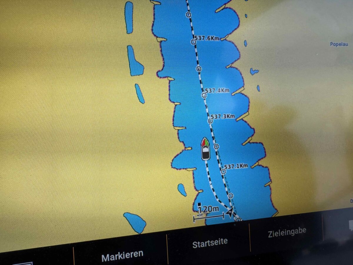 Darüber hinaus gab es auf dem Plotter eine merkwürdige Anzeige das es hier eine eingeschränkte Wassertiefe geben solle … merkwürdig ; -)